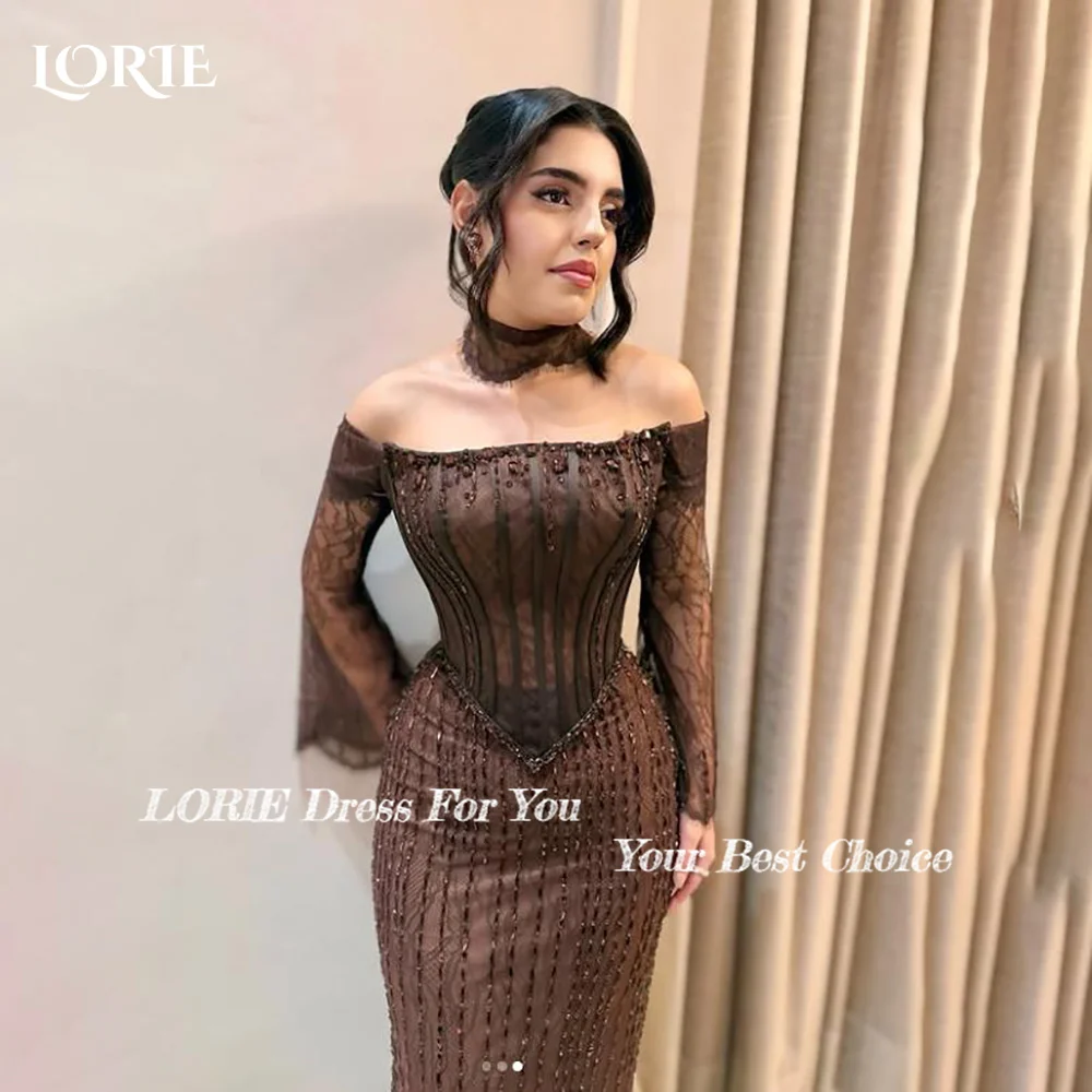 LORIE Shawl Crepe Mermaid Evening Dress Lace Appliques Illusion Prom Dress Corset Train Floor Length Party Gown Customized