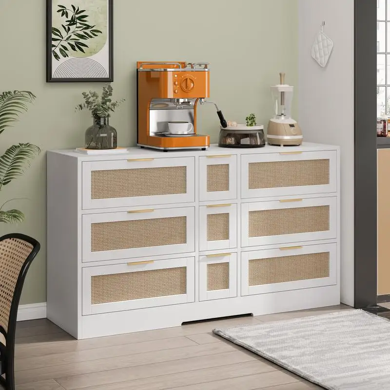 aliexpress , ali , shop , ali shop , online , store , online shop , online store , buy , sell , 51.2” White Rattan Storage Locker with 9 Drawers and Metal Handles for Kitchen, Living Room, and Bedroom