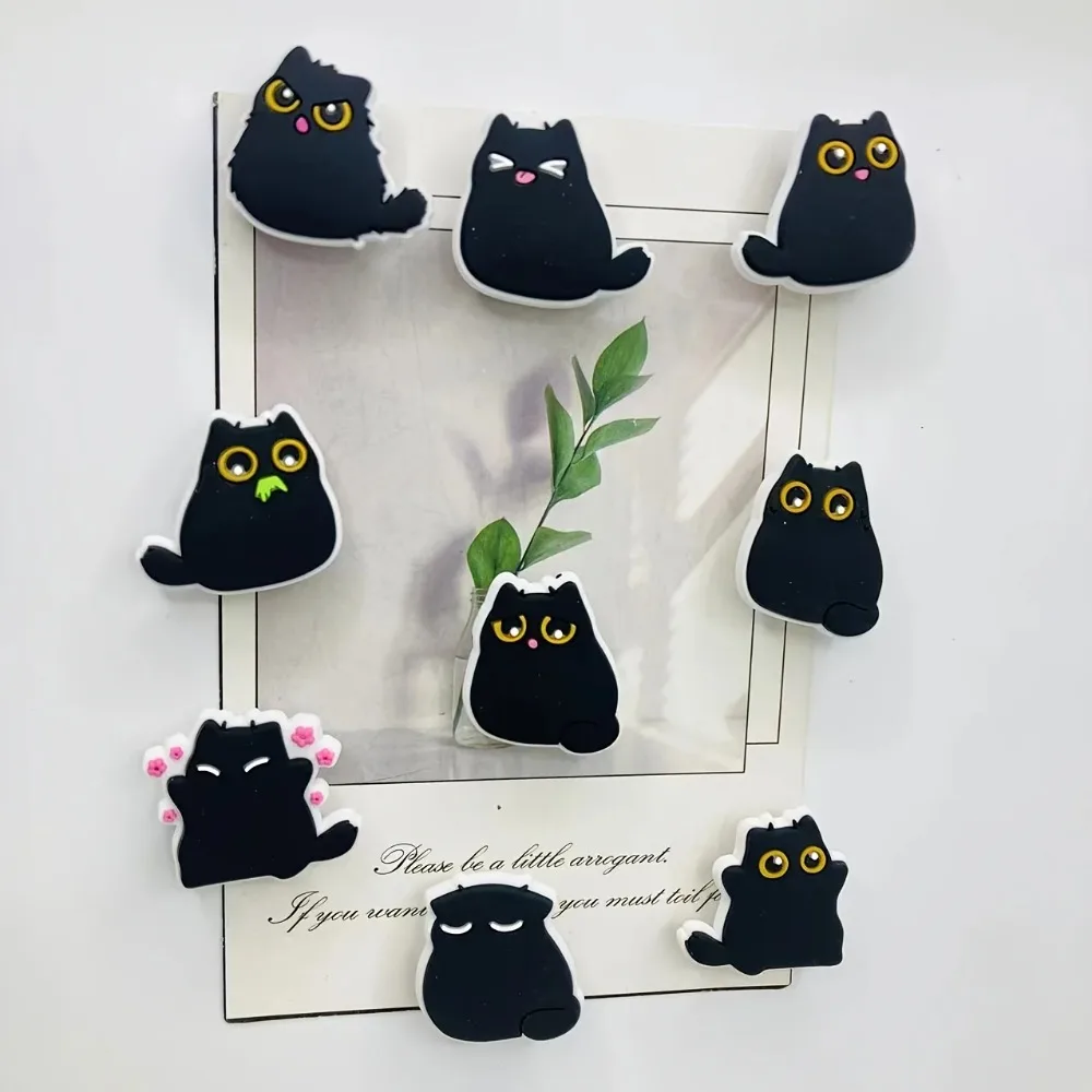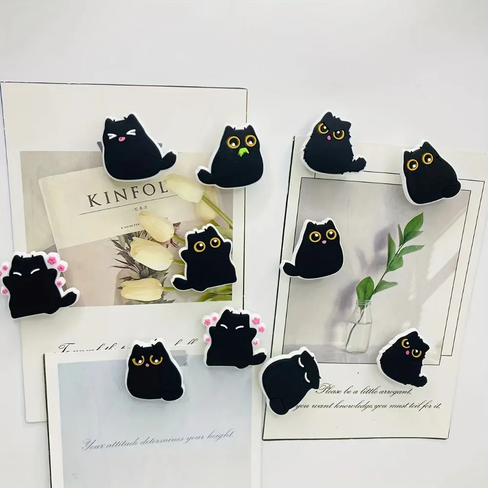 6pcs Kawaii Chubby Black Cat Fridge Magnets, Decorative Plastic Resin, Multi-Use for Kitchen and Office, Ideal Holiday Gift