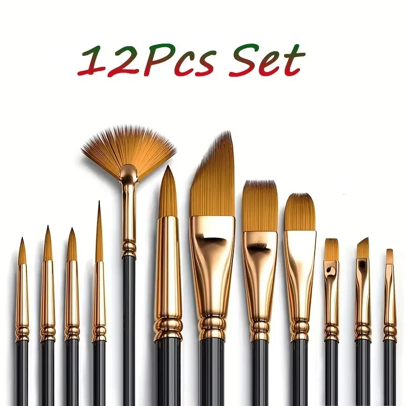 aliexpress , ali , shop , ali shop , online , store , online shop , online store , buy , sell , 12pcs Nylon Bristle Flat Brushes Set for Watercolor & Oil Painting - Suitable for Artists Amateurs Acrylic Paintings Fabric Brus