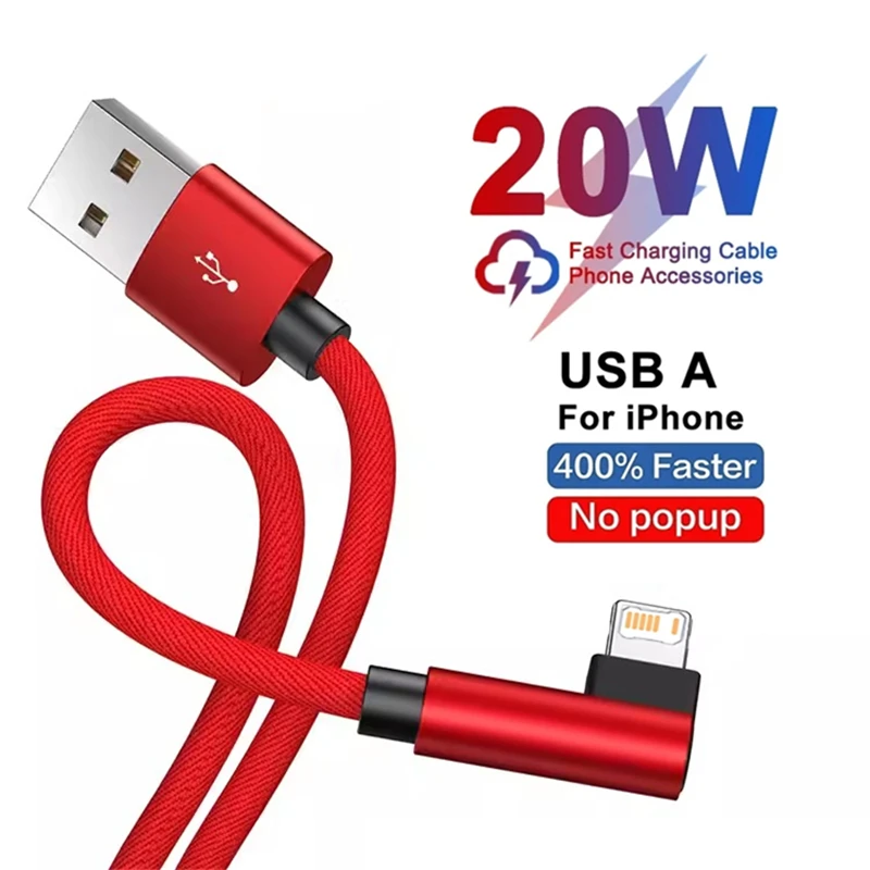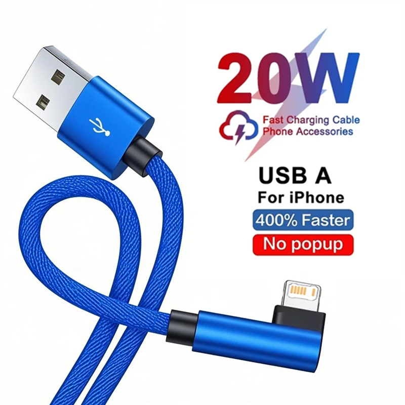 90 Degree Gaming Elbow Fast Charging USB Cable For iPhone 13 14 Pro Max X XR XS 11 12 mini 6S 7 8 Plus Quick Charge Data Cables