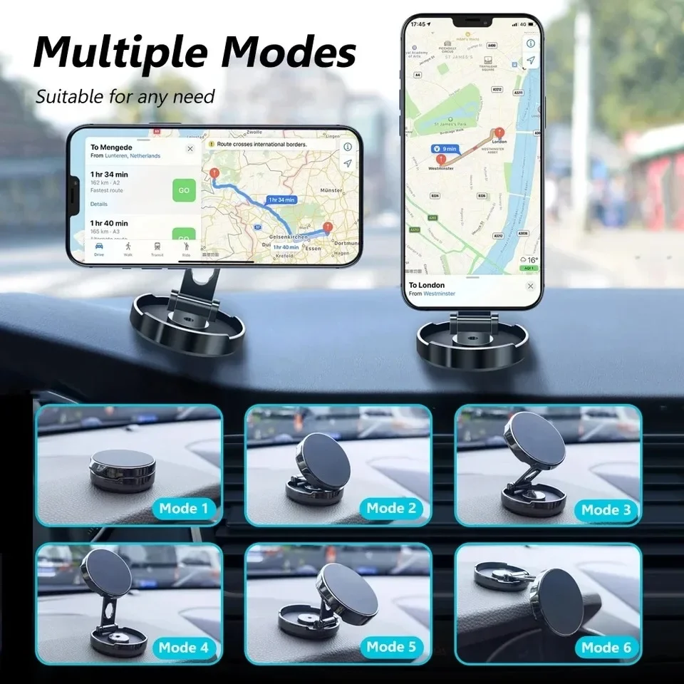 Car Mobile Phone Stand 720 Degree Rotation Metal Magnetic Suction Foldable Round Bracket Support for Universal Phones Holder