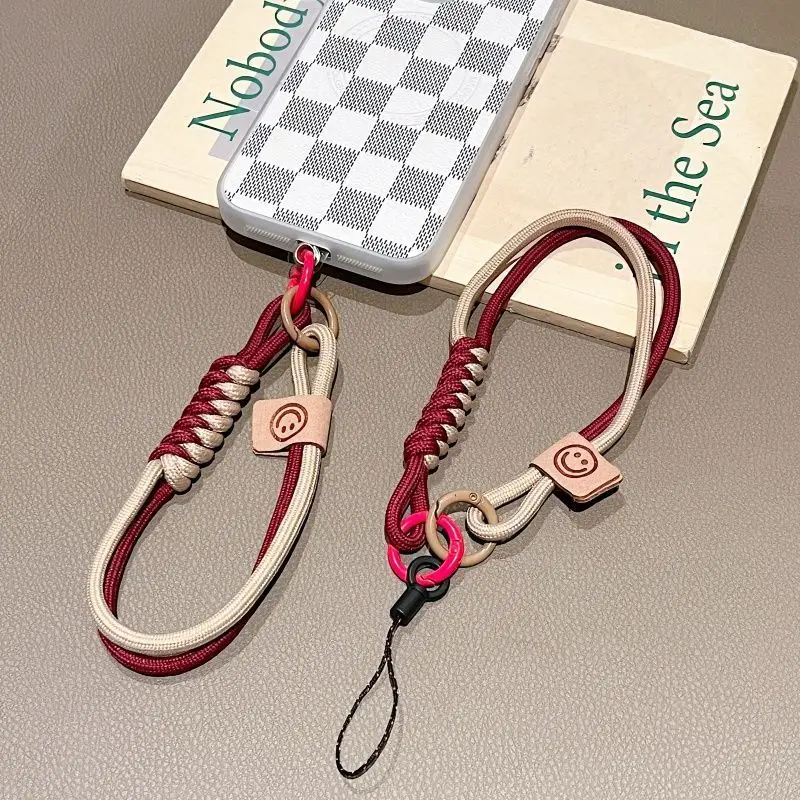 New Short Phone Lanyard With British Style Contrasting Color Weaving and Fashionable Smiling Face Wrist Strap for Phone Cases