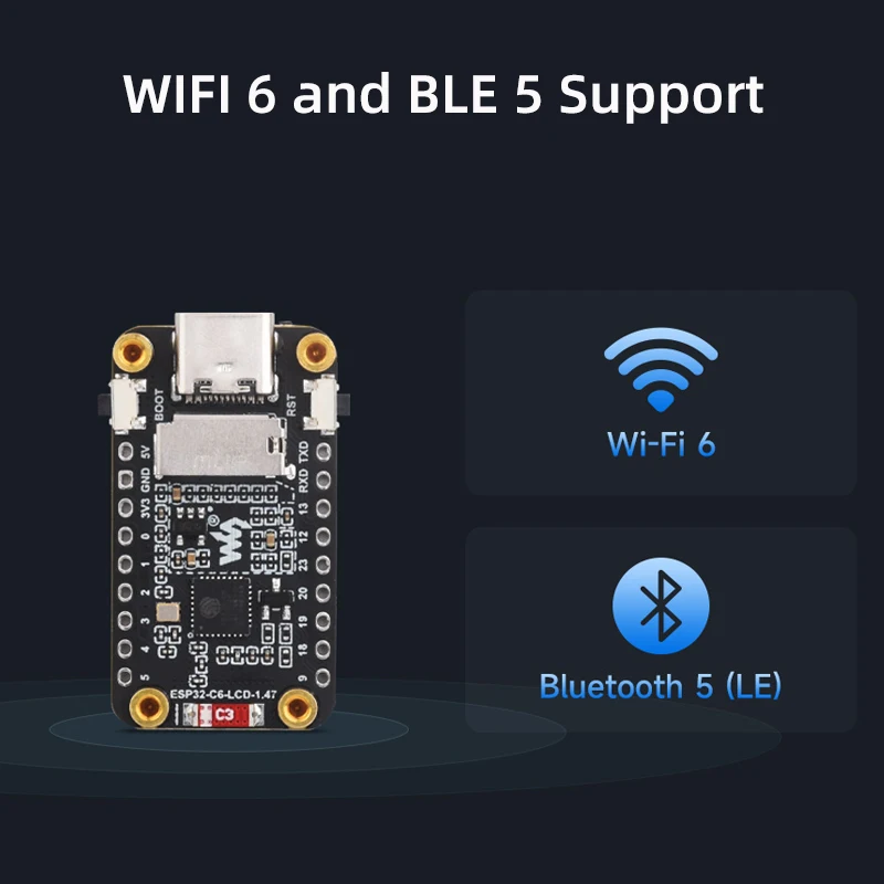 Waveshare ESP32-C6 1.47 Inch Display RISC-V Development Board WiFi 6 & BT ESP32 1.47'' Screen 172×320 LCD for AIoT GUI LVGL HMI