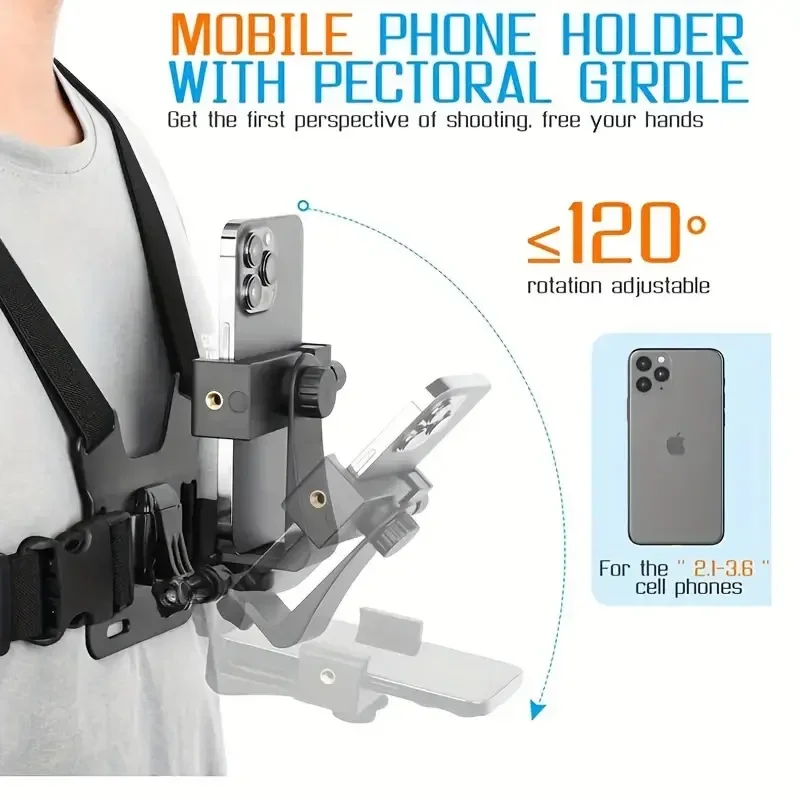1 PC Adjustable Phone Clip Holder With Chest Strap Fixation Bracket for Sport Camera Mobile Phone Camera Black Holder Accessory
