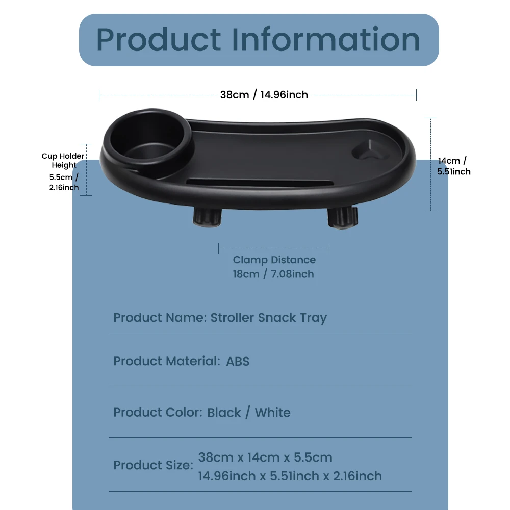 3-in-1 Universal Stroller Snack Tray Adjustable Cup Holder Phone Slot Compatible with Most Strollers Multifunctional Travel