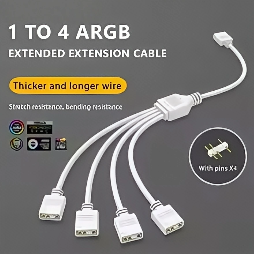 aliexpress , ali , shop , ali shop , online , store , online shop , online store , buy , sell , ARGB Fan Splitter Cable - 1 to 4 Port 5V 3-Pin Motherboard Sync Hub, 30cm Extension for PC Case Fans and LED Strips