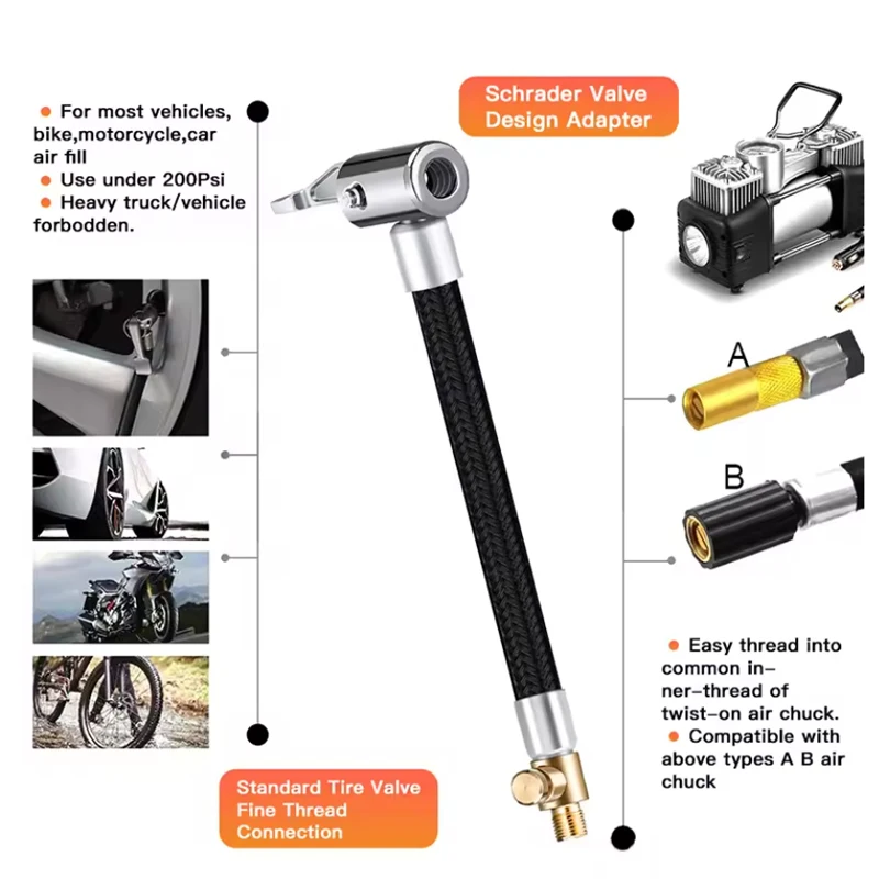 Car Tire Inflator Hose Air Pump Extension Tube Adapter Tire Repair Tyre Inflatable Hose for Motorcycle Bicycle Auto Accessories