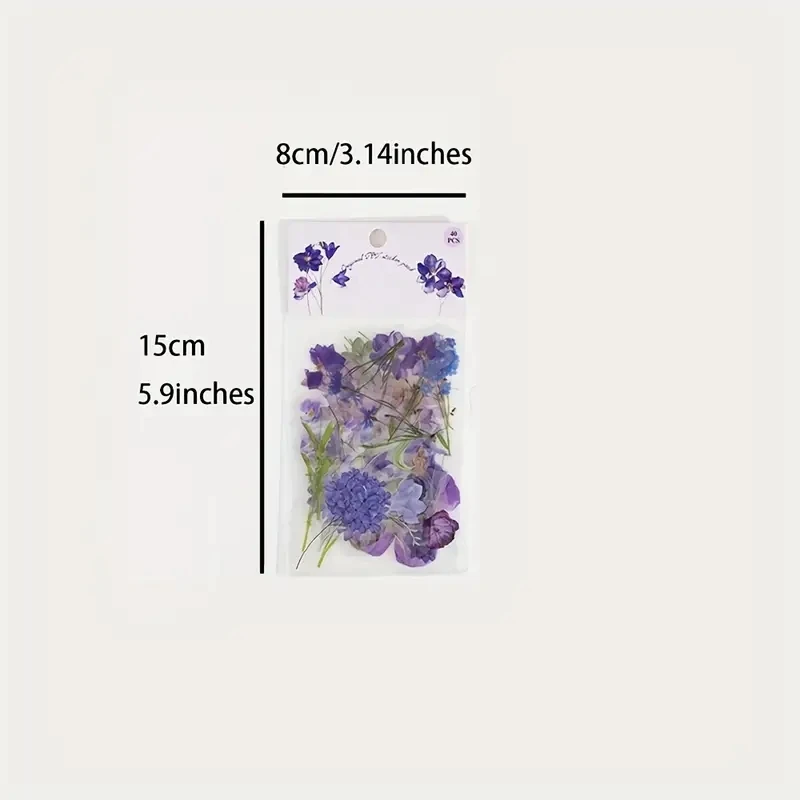JIANQI 40Pcs Natural plants Flower Stickers DIY scrapbook PET Material Handbook Water Cup Plant Transparent Sticker