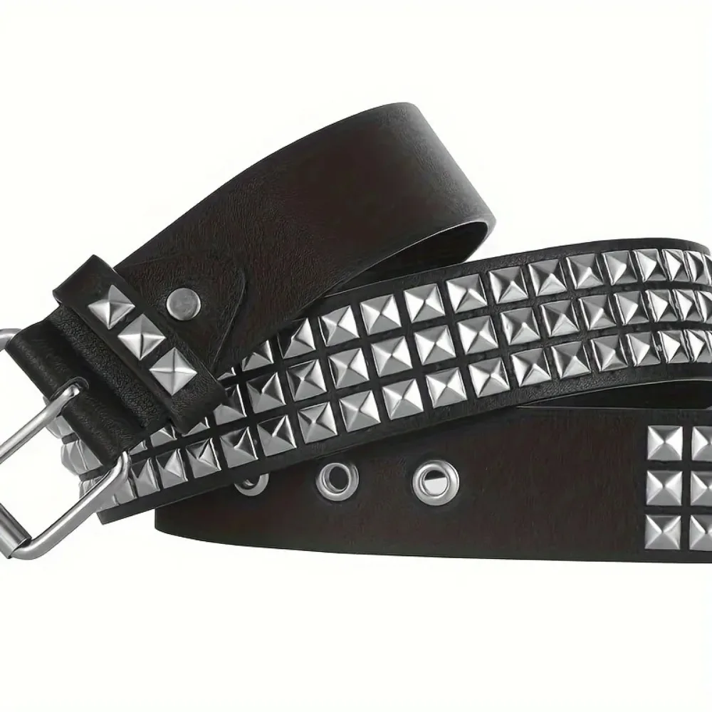 Punk style rivet belt set, equipped with stainless steel square buckle, male and female rivet decorat