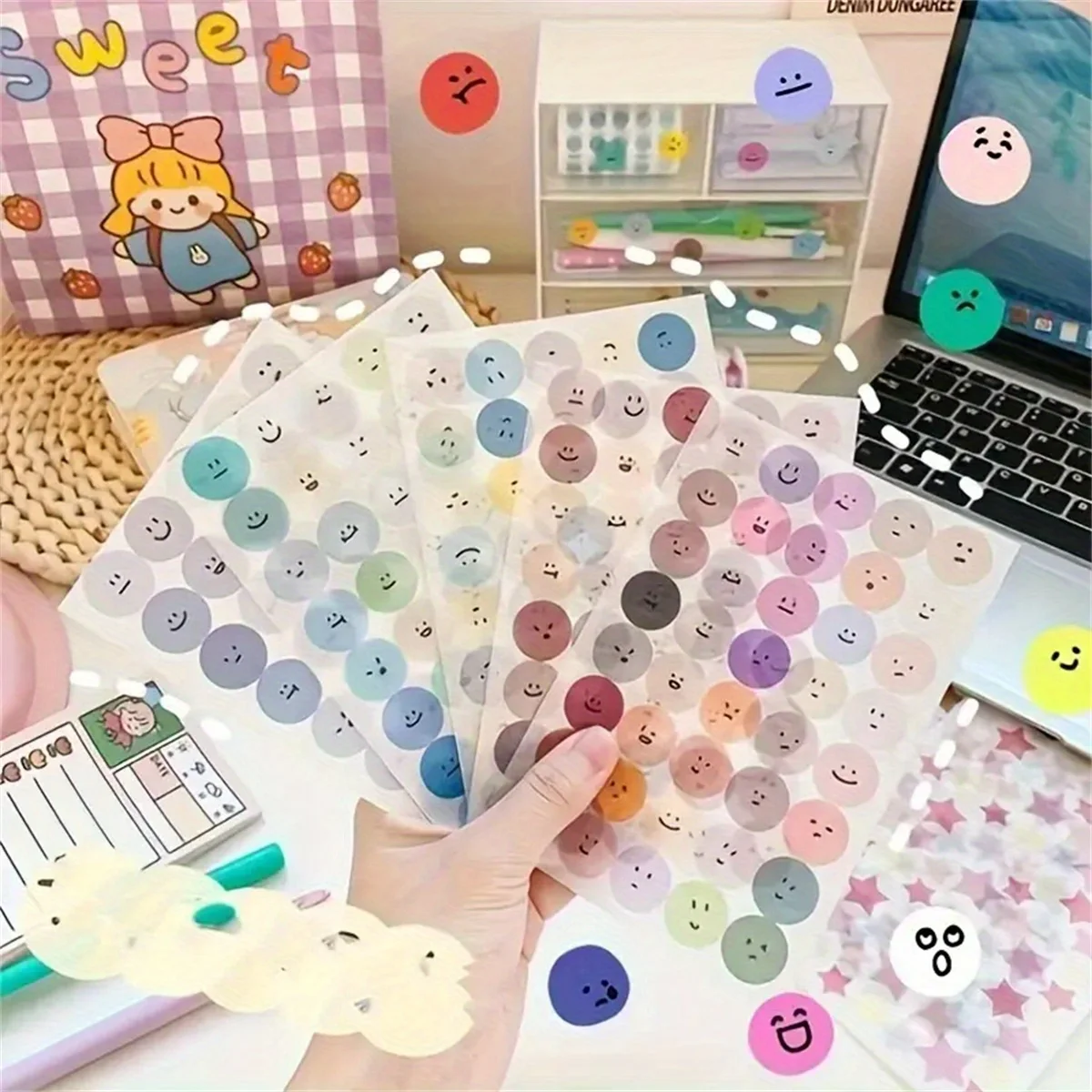 ALI shop - search results ... ... 6 Sheets, Cute Expression Cartoon Doodle Cup Round Sticker, Multicolor Smile Face Gift Decoration Hand Account Sticker ::: 2021 ::: :::