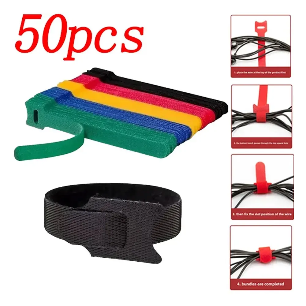 50pcs Reusable Hook and Loop Cable Ties Fastening Straps Multi-Purpose Wire Organizers for Computer/TV/Electronic Devices