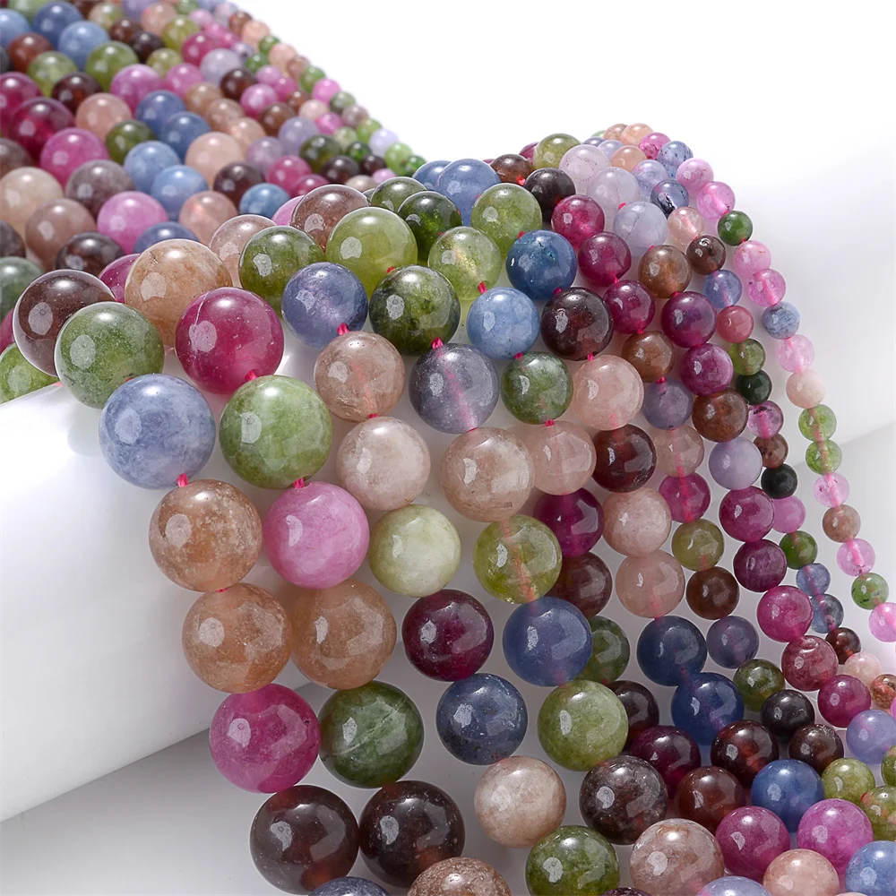 Natural Tourmaline Stone Beads Colorful Spacer Beads for Jewelry Making DIY Charms Bracelet Necklace Accessories 4 6 8 10 12mm