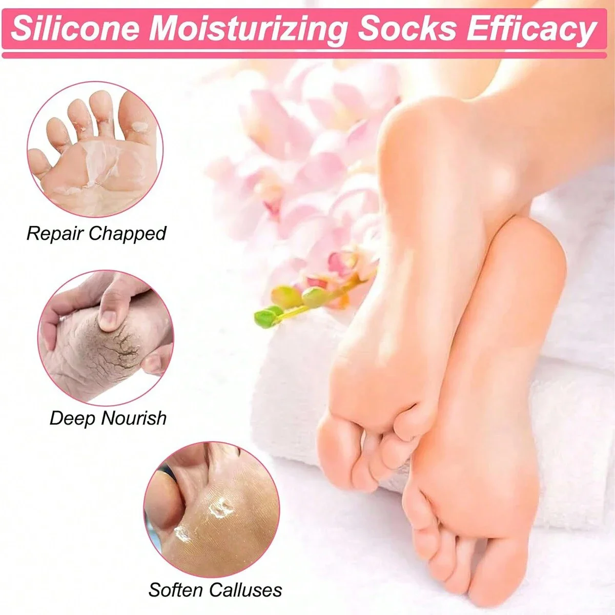 2 Pieces Silicone Foot Care Socks, Moisturizing Protection, Softening Dry, Cracked Heels, Foot Care Tools for Men and Women