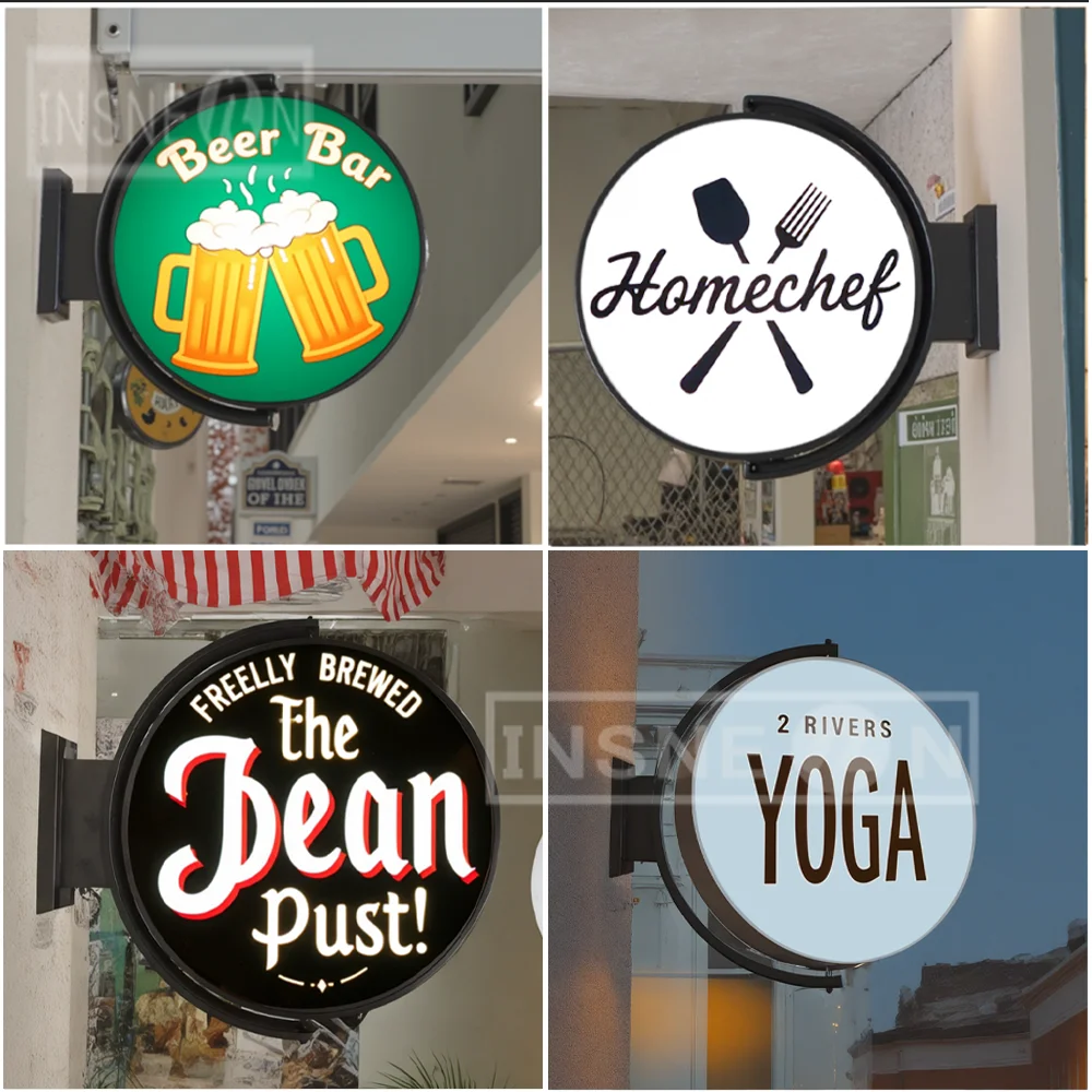 Custom Home Sign Light Logo Acrylic Led 360 Rotating Box Outdoor Business Signage Illuminated Signboard Waterproof House Shop