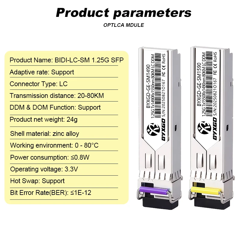 BIDI LC 1.25G SFP Optical Module Adaptive Rate SFP Fiber Optic Transceiver For Mikrotik/Cisco/Switch SM SFP Optical Fiber Module