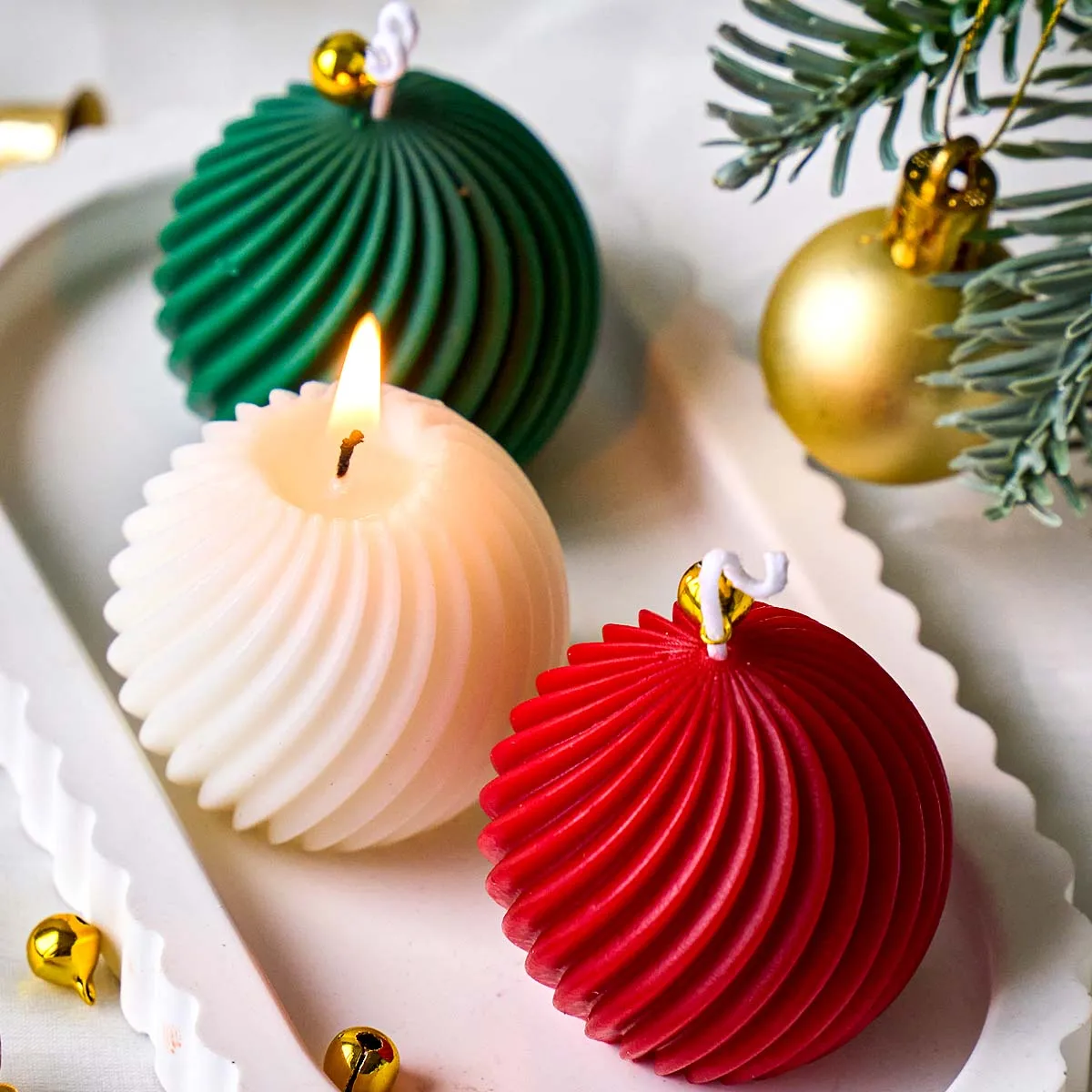 3D Christmas Ball Silicone Candle Mold DIY Handmade Twist Stripes Scented Candle Soap Mold Xmas Craft Gift Home Decor Supplies