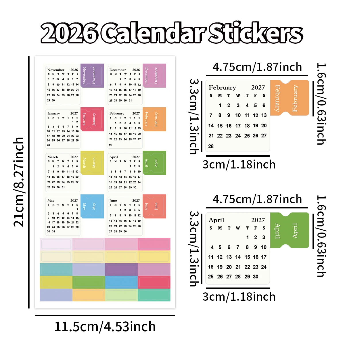 2sheets 2026 Calendar Stickers,Monthly Planner Stickers,Labels For Diy Scrapbook Journals Notebooks,Scheduling,School/Office Use