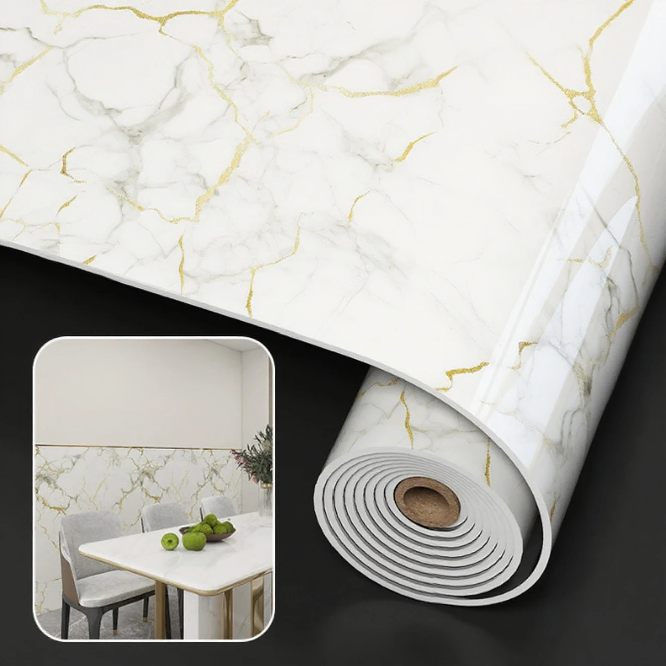 1 Roll Marble Thick Foam Imitation Tile Self-Adhesive Wallpaper Bedroom Living Room Decoration Bathroom Waterproof Wall Sticker