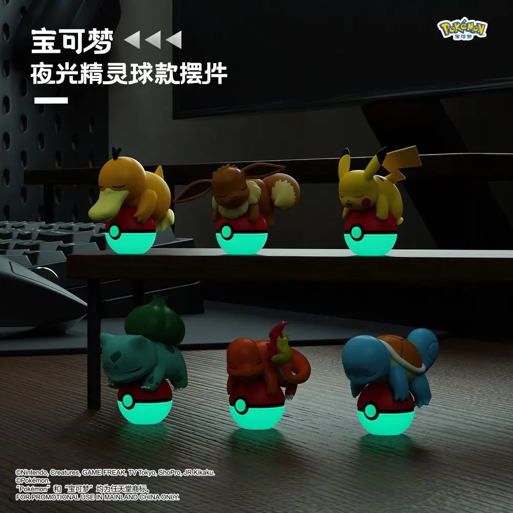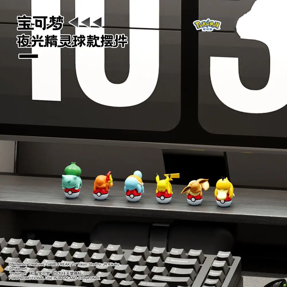 Pokemon Cute Glowing Series Charm PokeBall Cute Particle Ornament Bedroom Lighting Bulbasaur Action Figure Cartoon Accessory