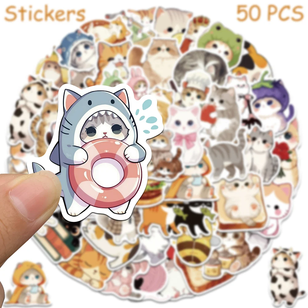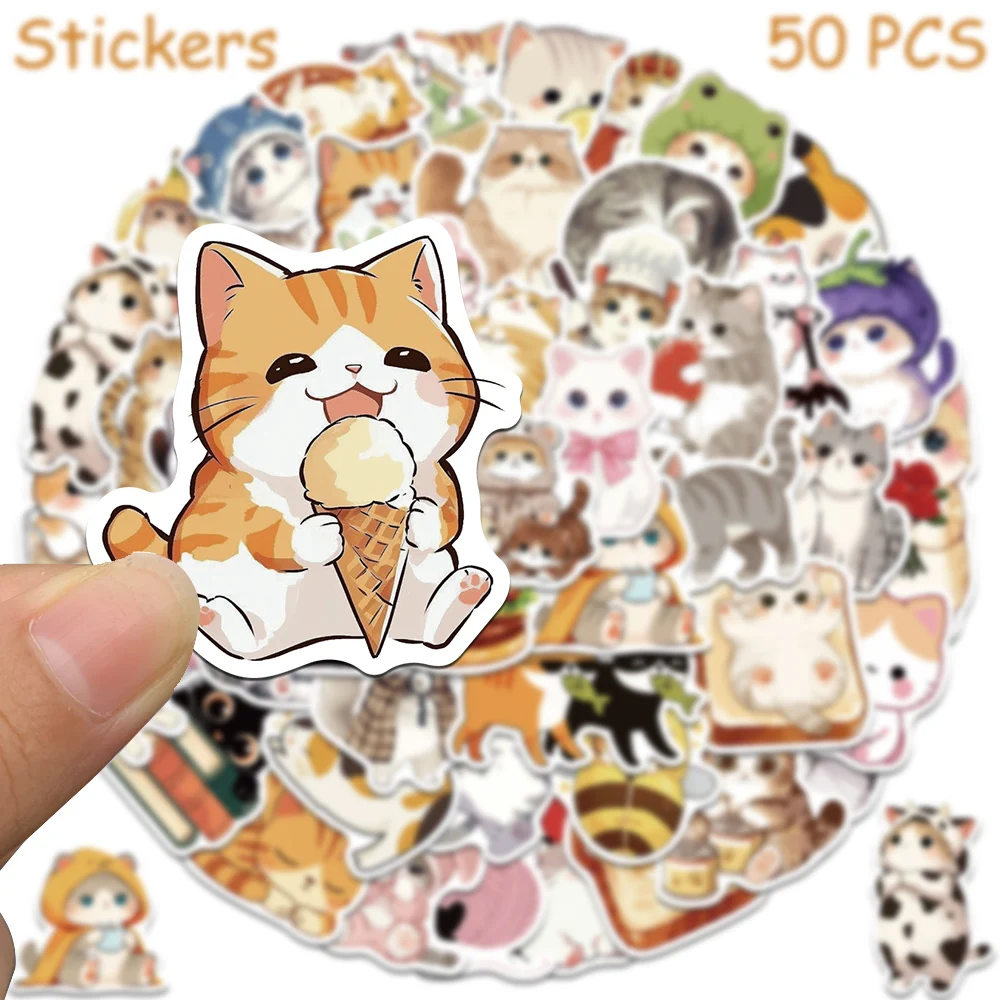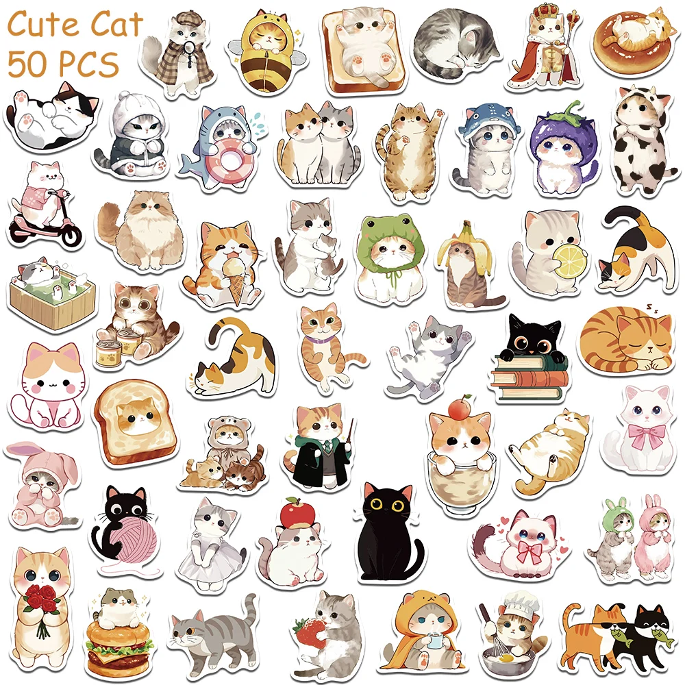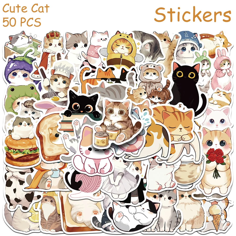 50pcs Cartoon Cute Cats Stickers Decals For Laptop Notebook Skateboard Guitar Helmet DIY Aesthetic Stickers Creative Gifts