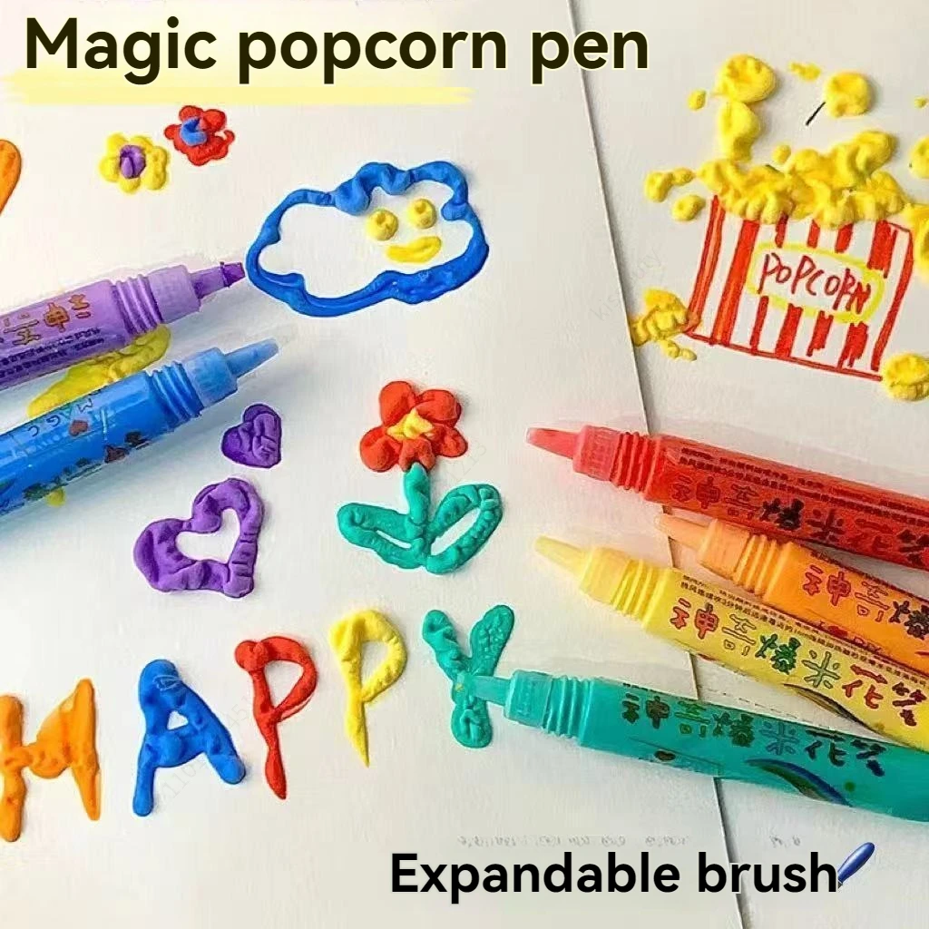 6 Pcs / Set New Exotic Popcorn Pen Multifunctional Foam Marker Pen Notebook Children's Magic Pen Fun Fluffy Pen 3D Bubble Pen
