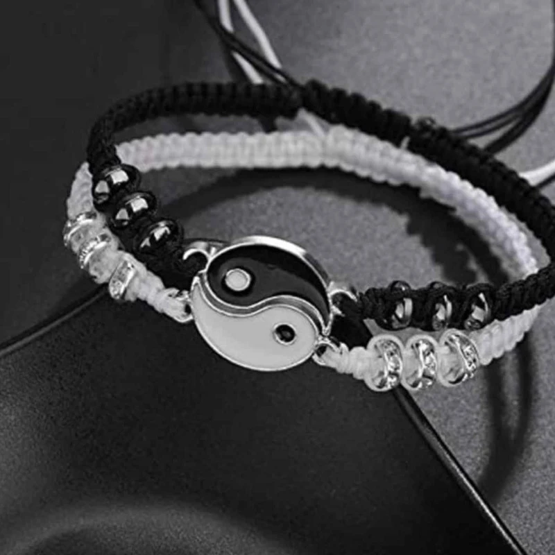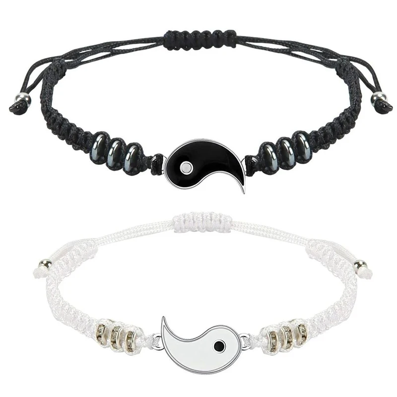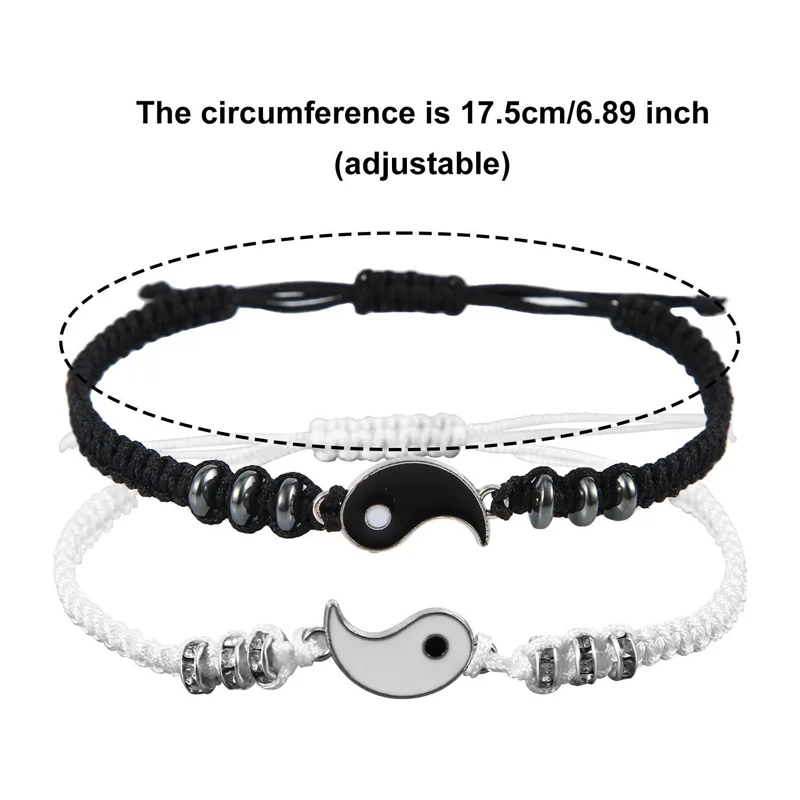 2 PC Jewelry Set Couple Black White Tai Chi Bracelet Rope Adjustable Chain Set Simple Style Daily Wear Jewelry