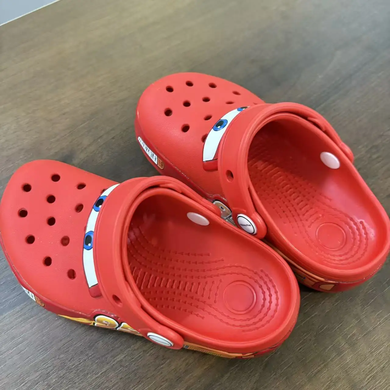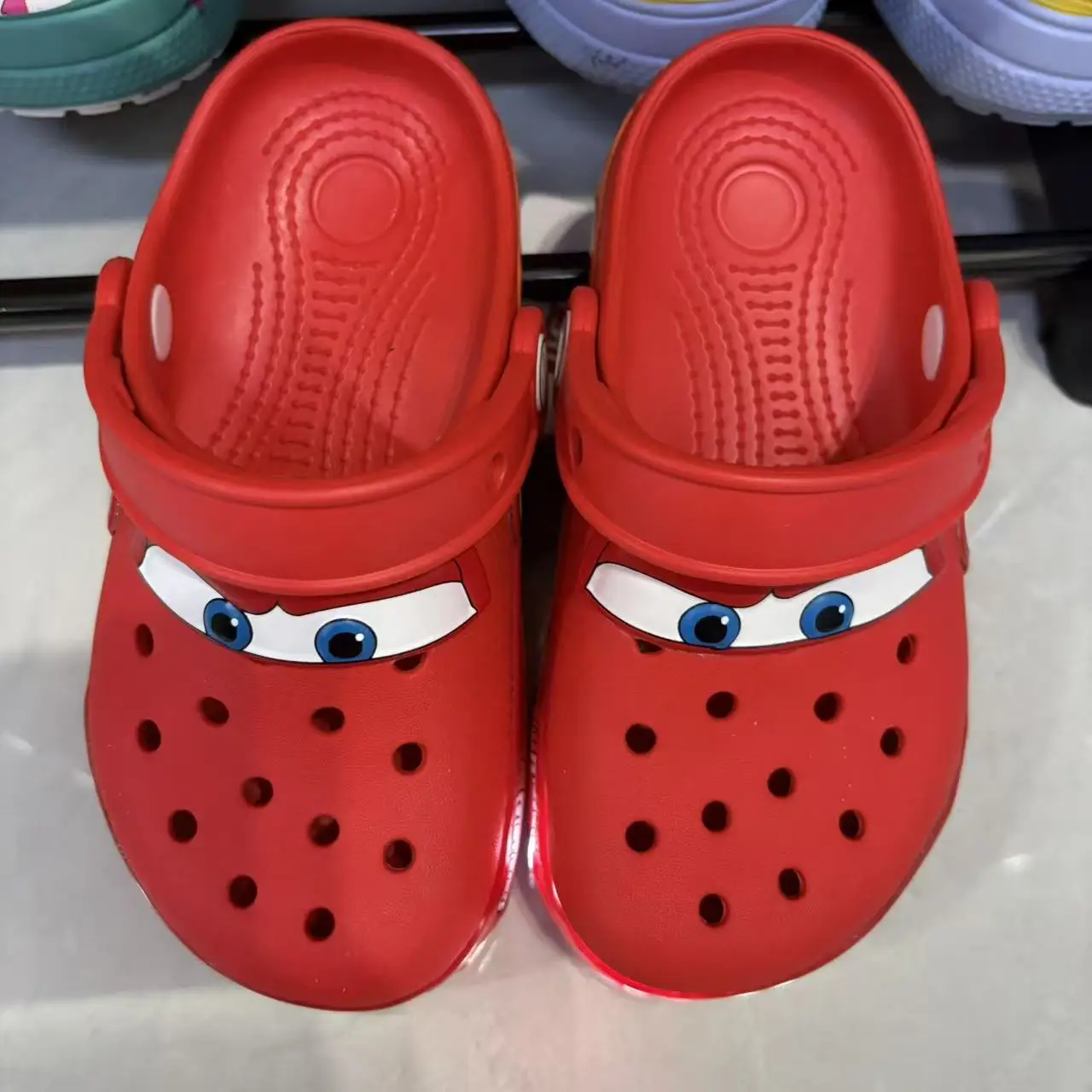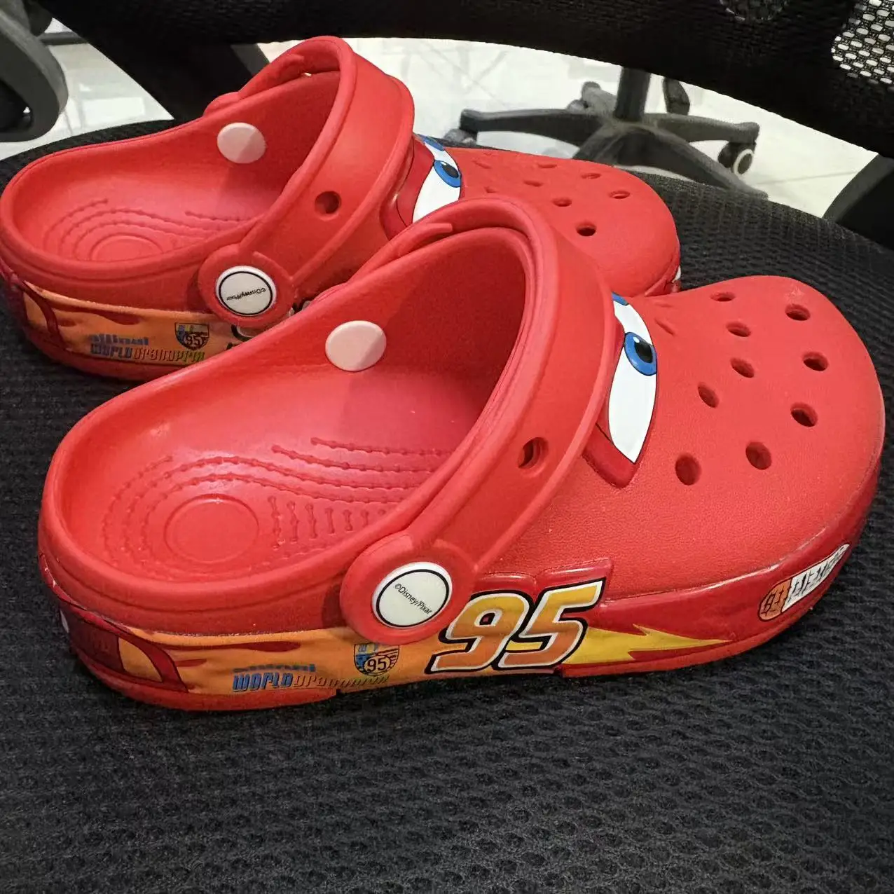 Disney Pixar Lightninged Mcqueens Cartoon Solid Waterproof Slippers Fit Children Outdoor Sandals Breathable EVA Shoes Xmas Gift