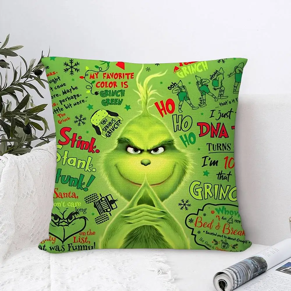 Christmas T-The G-GrinC-chs-S Pillow Case Plush Fabric Soft Double Sided Print Sofa Cushion Cover Throw Pillow Covers