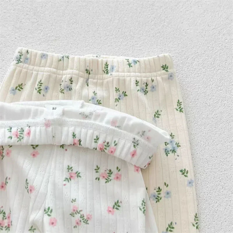 New Arrival Baby Girls Floral Print Cotton Pajama Set Long Sleeve Lace Trim Two Piece Sleepwear Autumn Homewear Infant Toddler