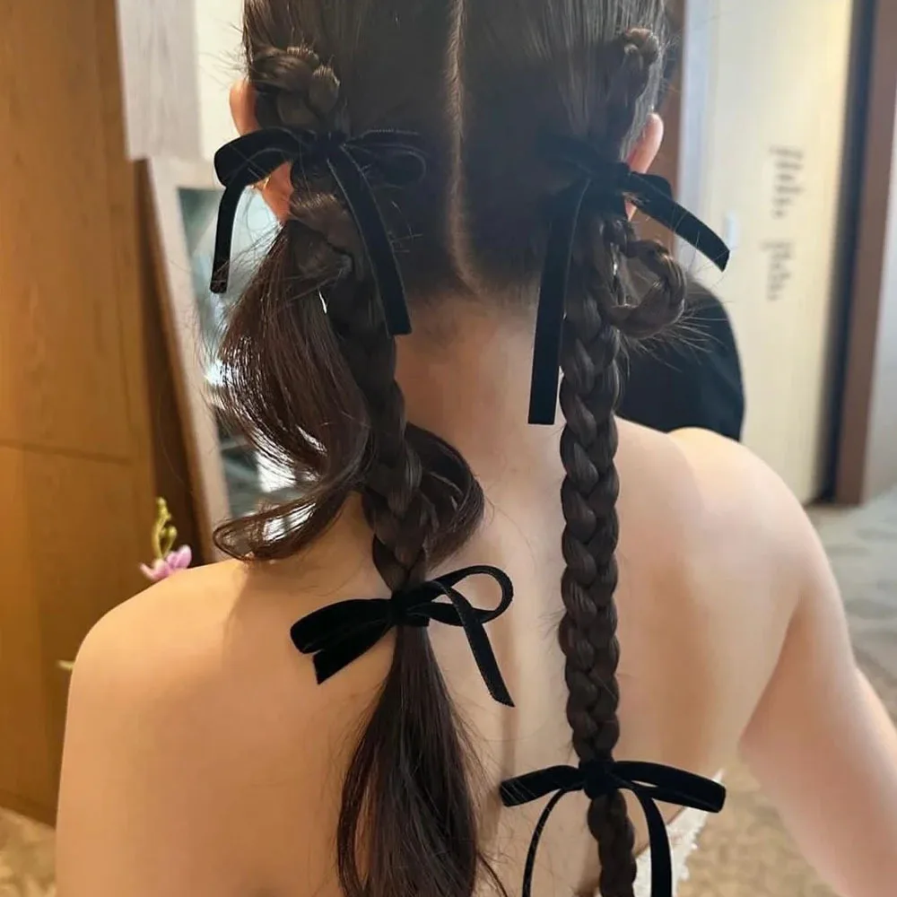 2/8pcs Fashion Black Velvet Bow Hair Ties for Women Girls Party Hair Accessories