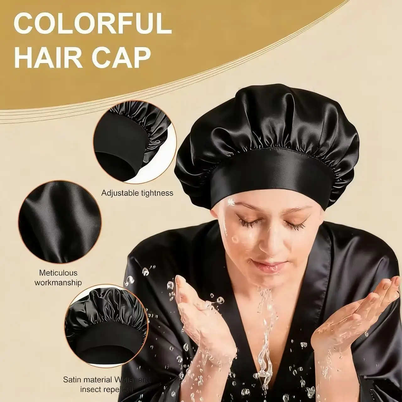 Bonnet Sleeping Cap Nightcap High Elastic Wide Brim Satin Night Hat Shower Silky Bonnet Hair Cover Wrap for Women Man Sleep Cap