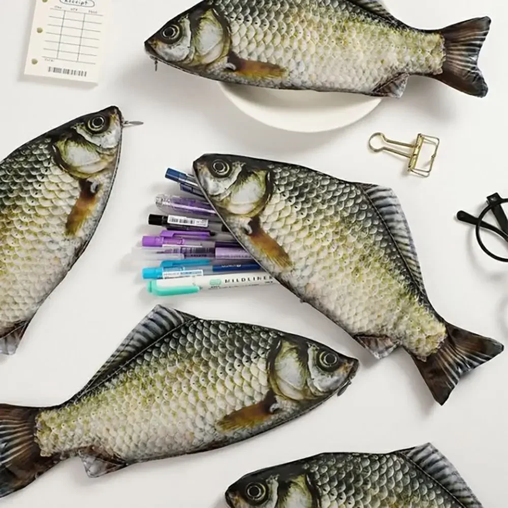Cartoon Large Capacity Pen Bag Simulated Crucian Carp Multifunctional Pencil Case Stationery Organizer Student
