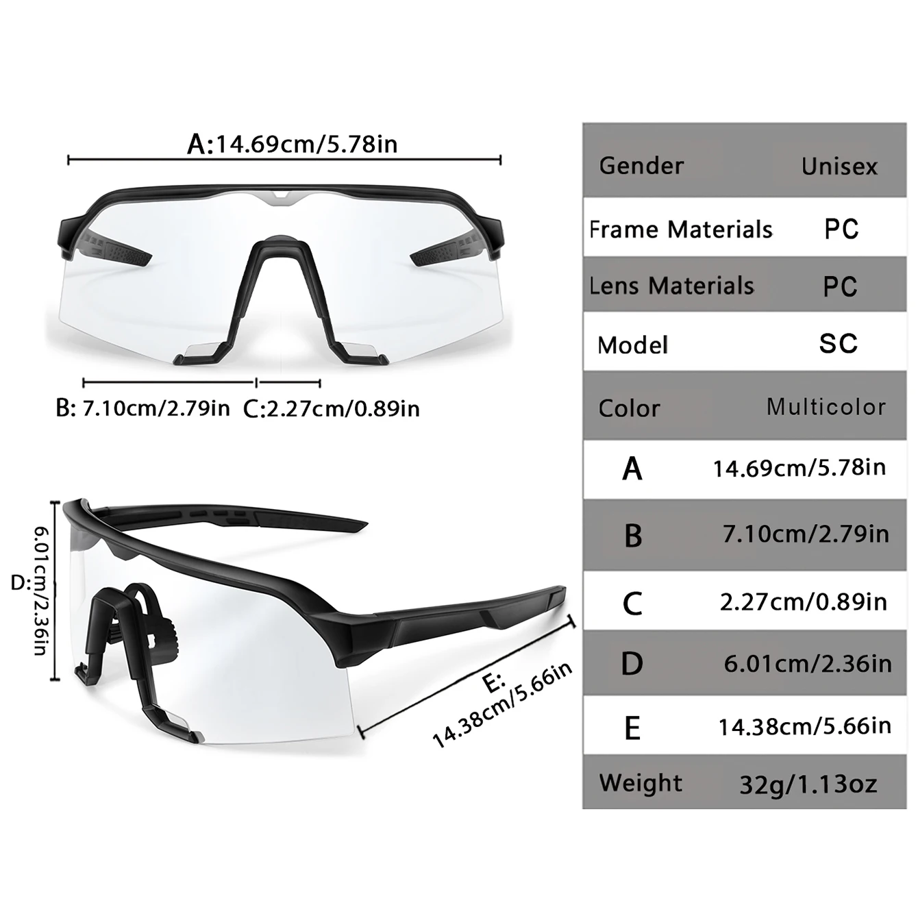 Photochromic Sunglasses for Men Women Outdoor Mtb Bicycle Cycling Running Eyewear Windproof Goggles Oversize Shades