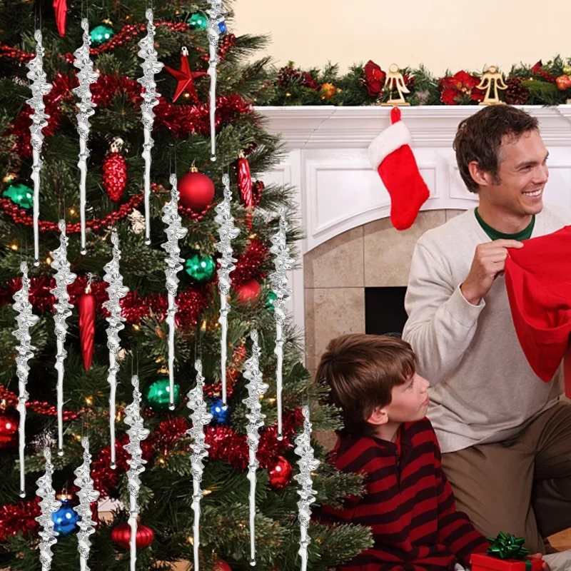 Clear Acrylic Icicle Ornaments for Christmas Tree Decorations Crystal Hanging Icicles Drop Xmas Wedding Decoration Supplies