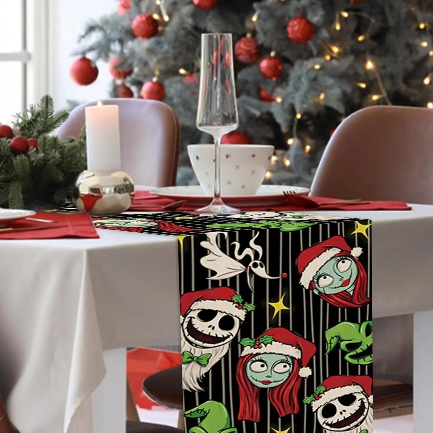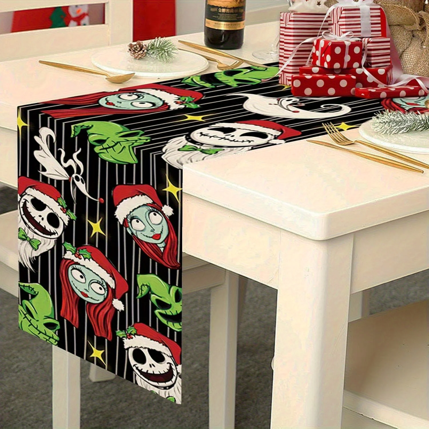 ALI shop - search results ... ... 1 Piece of Merry Christmas and Happy Halloween Table Runner, Christmas Nightmare Jack and Sally Green Monster Ghost Stripe Print, Suitable for Christmas ::: 2021 ::: :::