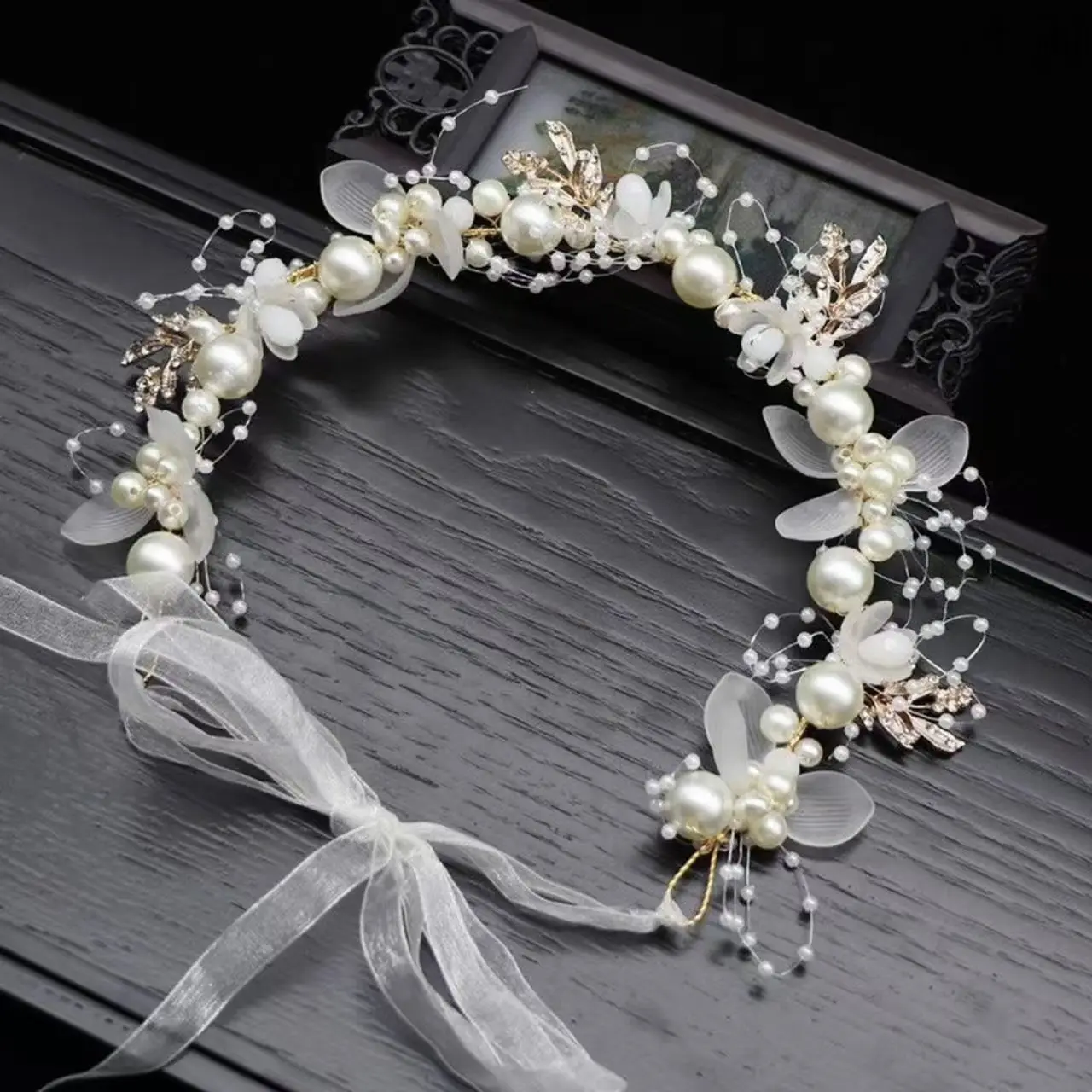 Wedding Accessory Bride Crown Hair Crystal Jewelry Tiara With Pearls Flowers Wedding Crown Floral Pearl Bridal Headband