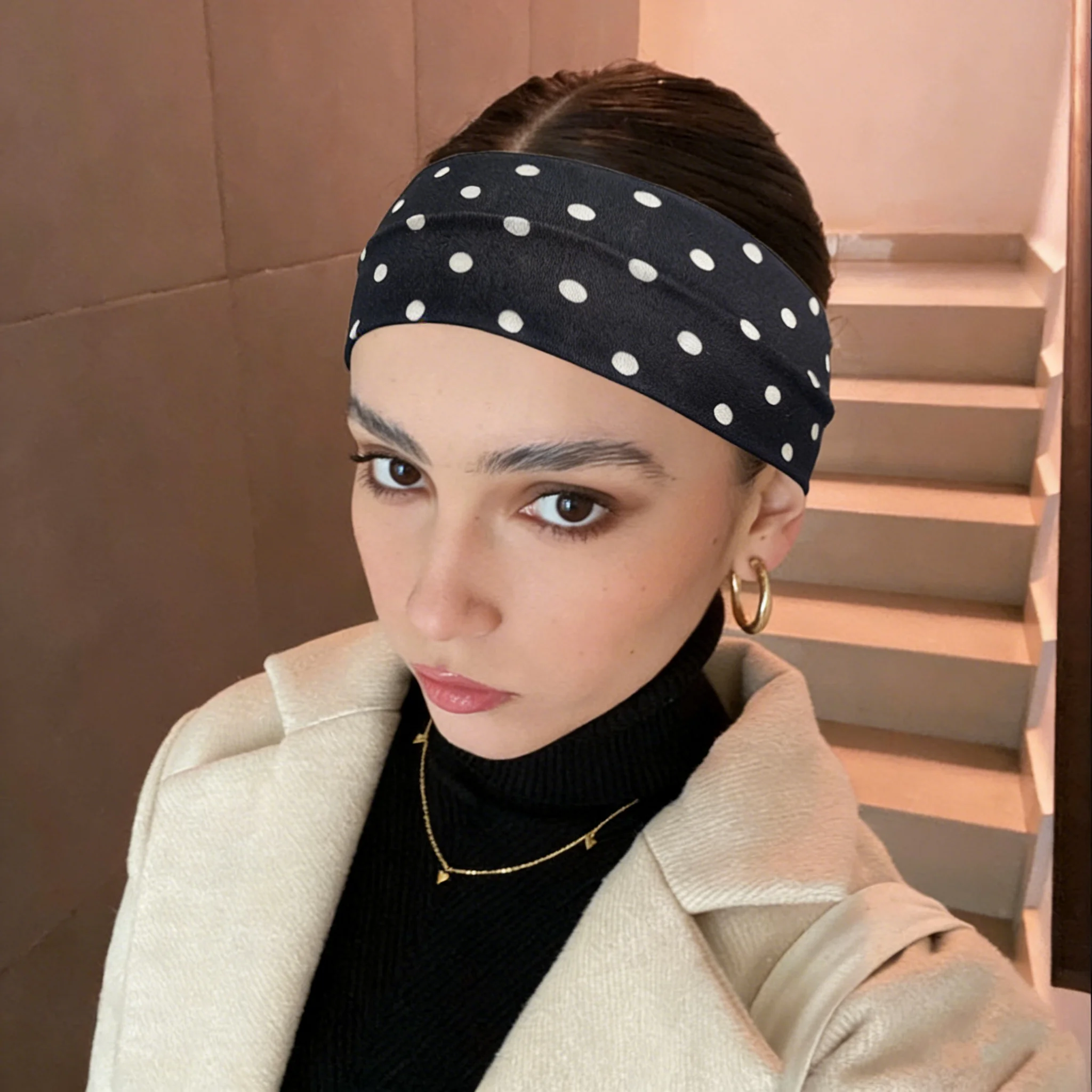 1pc Polka Dot Yoga Elastic Headband – Fashionable Dot-pattern Makeup Headband, Sports & Fitness Sweat-absorbent Hairband
