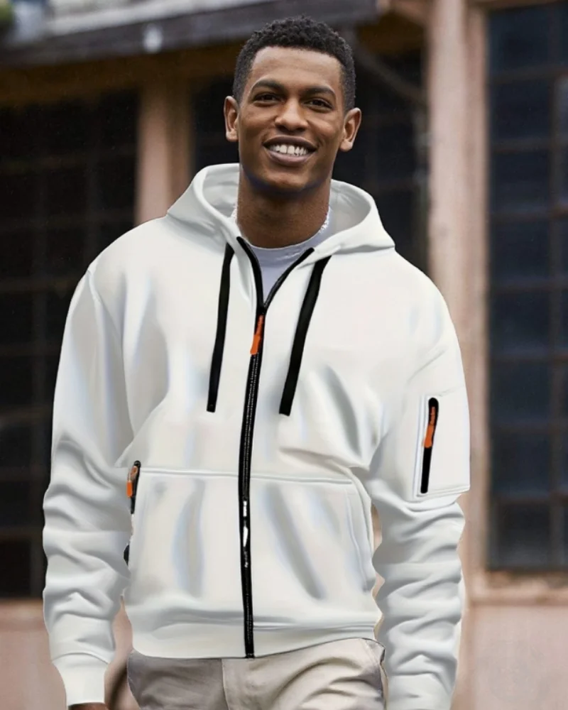 Casual top men's 2024 autumn and winter sportswear solid color men's top - fashionable sports solid color hoodie