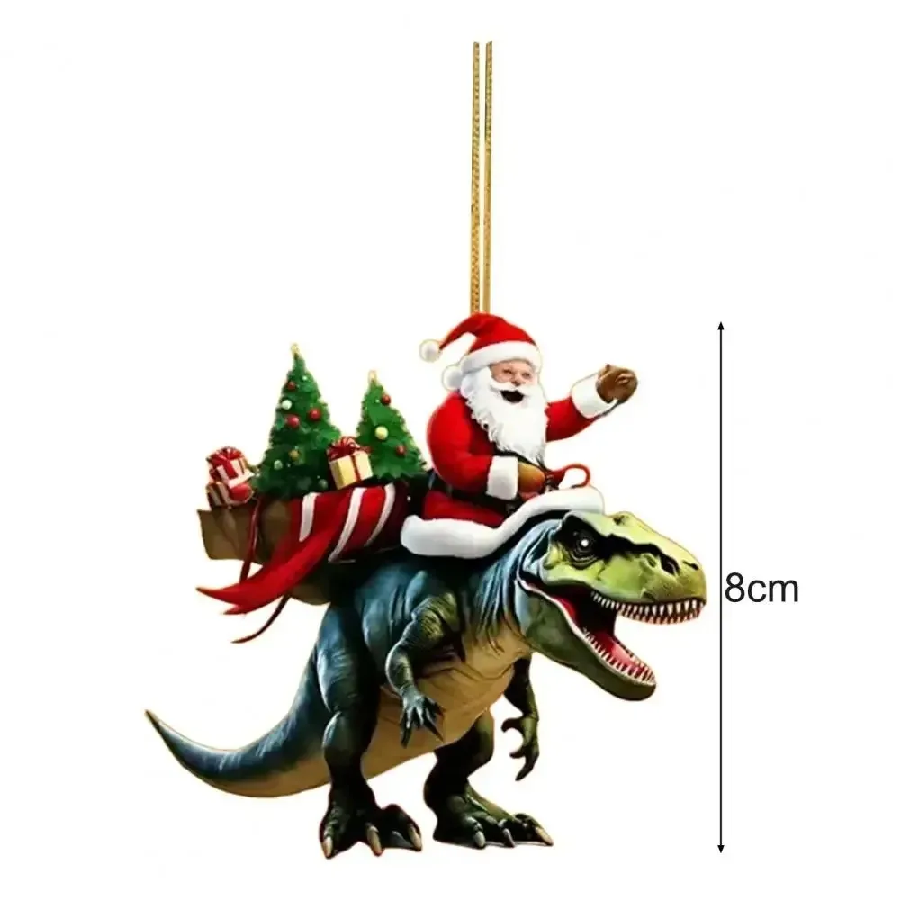 Christmas Pendant Santa Claus on Dinosaur Ornament 2D Flat Acrylic Hanging Decoration for Christmas Tree Mantel Decor