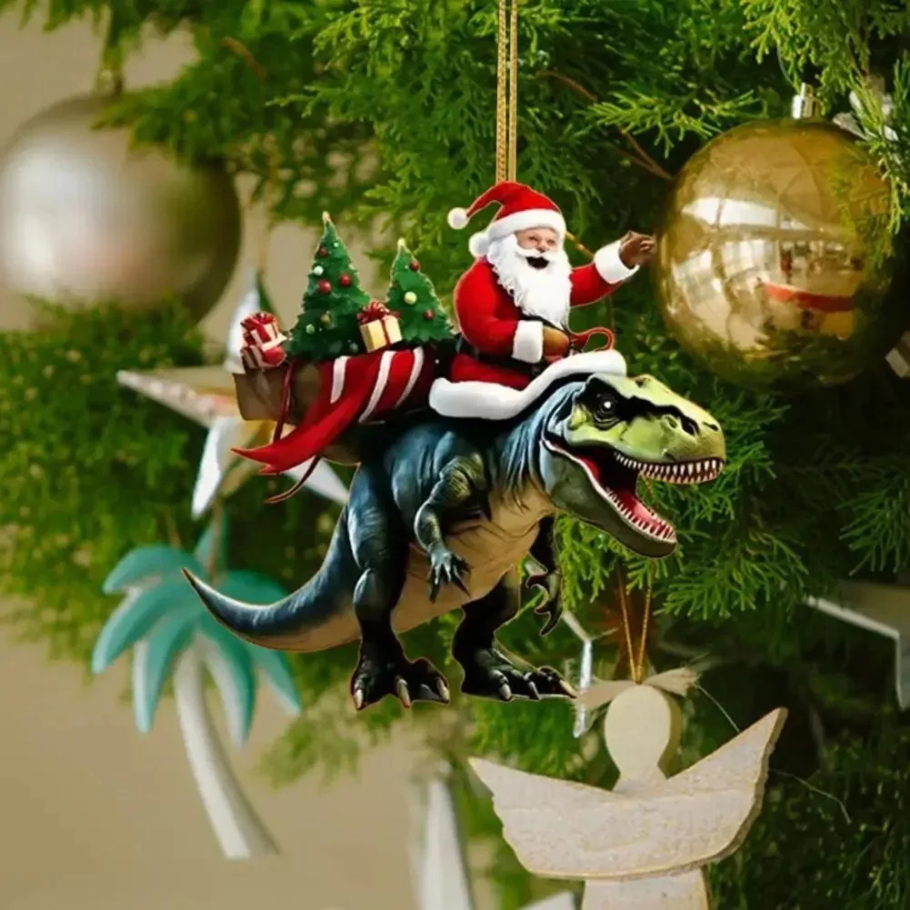 aliexpress , ali , shop , ali shop , online , store , online shop , online store , buy , sell , Christmas Pendant Santa Claus on Dinosaur Ornament 2D Flat Acrylic Hanging Decoration for Christmas Tree Mantel Decor