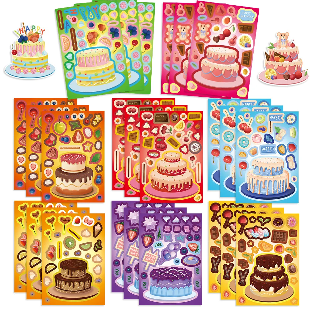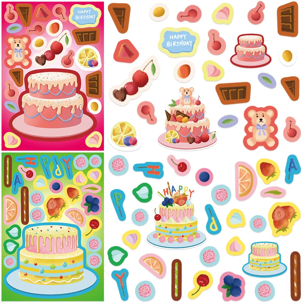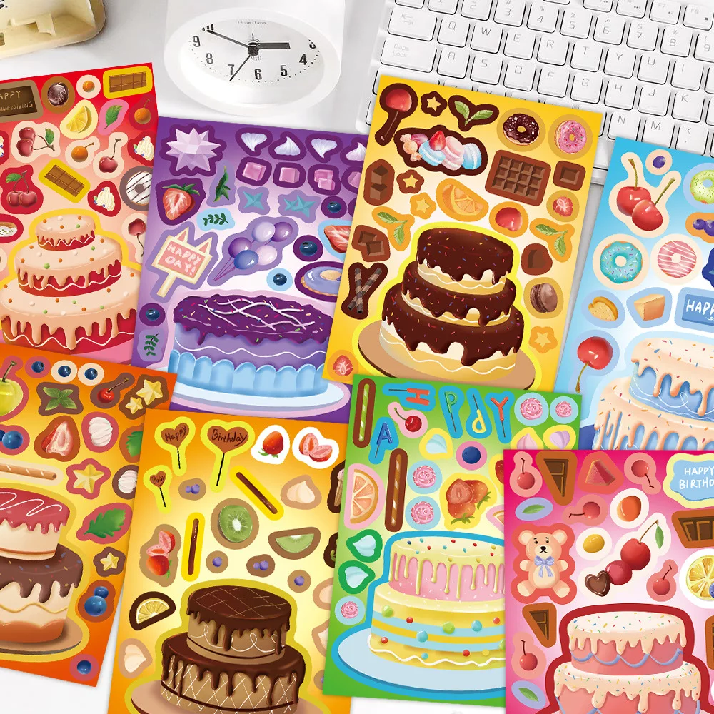 8Pcs Creative Cake Wishes Come True Puzzle Stickers Assembly Puzzle DIY Cartoon Stickers Puzzle