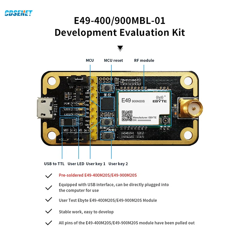 aliexpress , ali , shop , ali shop , online , store , online shop , online store , buy , sell , CMT2300A 868/915MHz Wireless Module Test Board CDSENT E49-900MBL-01 Pre-soldered E49-900M20S USB Interface Testing Board Kit