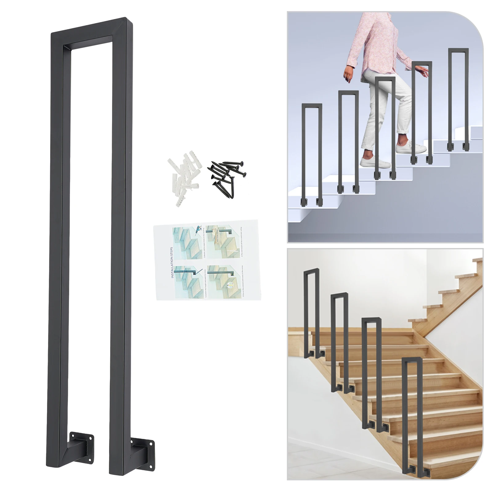 1PCS Stair Railing U-Shaped Stair Handrail Side Mount Decorative Railing Non-Slip Safety for Elderly Children