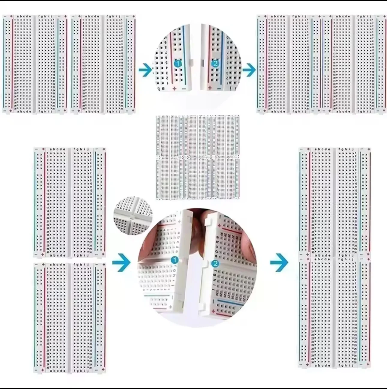 MB-102 Placa de pruebas 400/830 puntos PCB sin soldadura Placa de pan Cable de puente Placa prototipo DIY para Kit Arduino