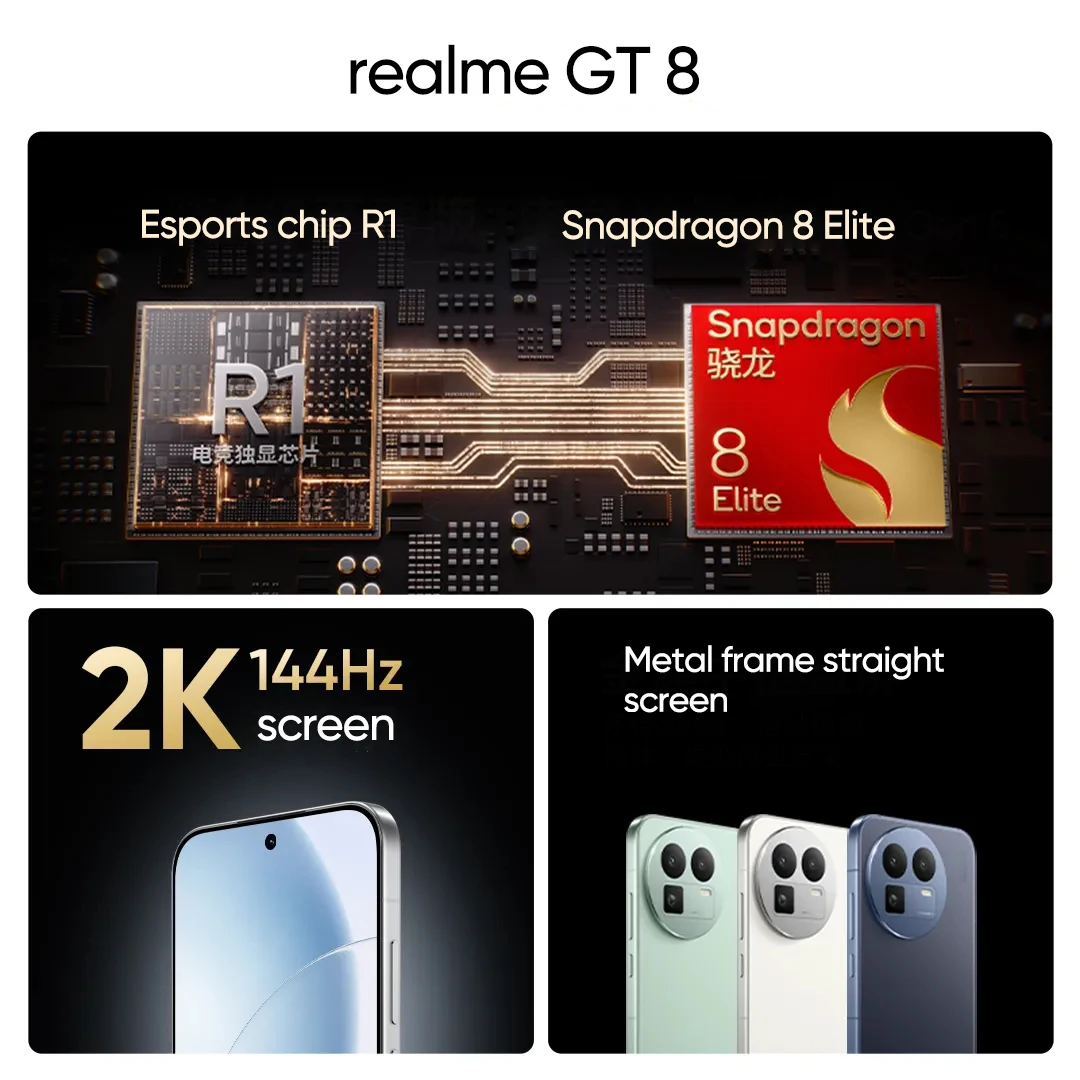 Realme GT 8 China Version 7000 mAh 100W Supercharge Snapdragon 8 Elite 6.79 Inch AMOLED 144Hz Rear Camera 50MP