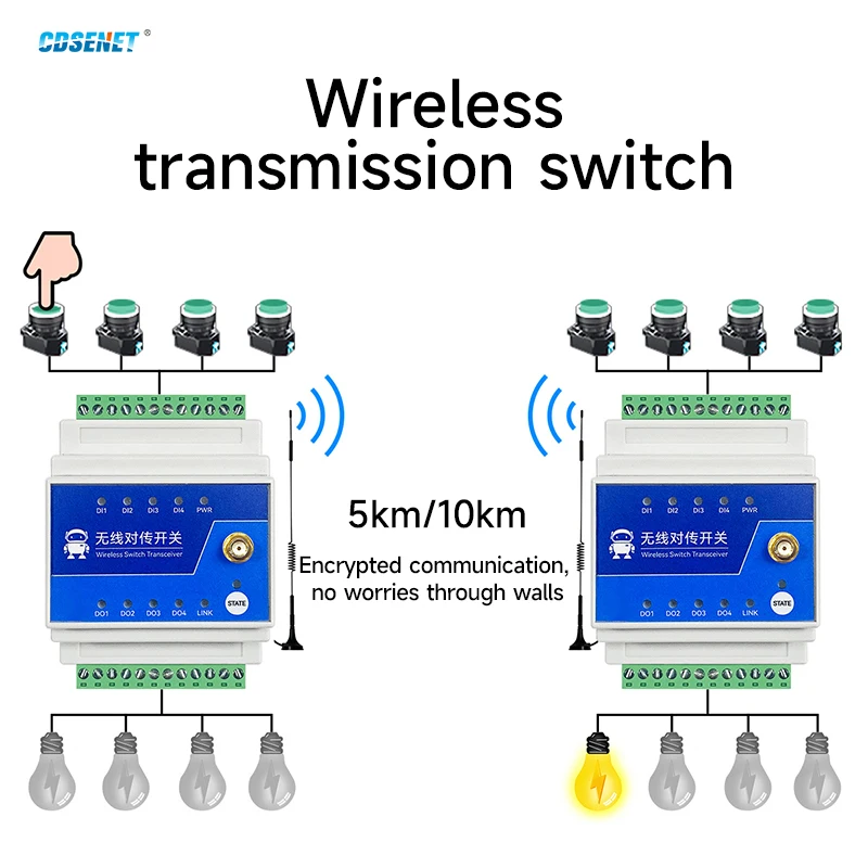 LoRa Wireless Relay Switch 1/2/4/8 Way DI+DO IO Modem 868/915MHZ CDSENET E860-DTU RS485 Remote Transmission Long Distance 5/10km