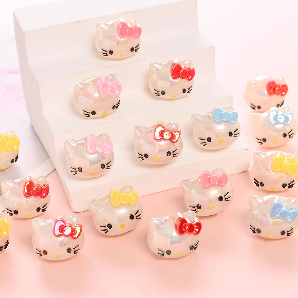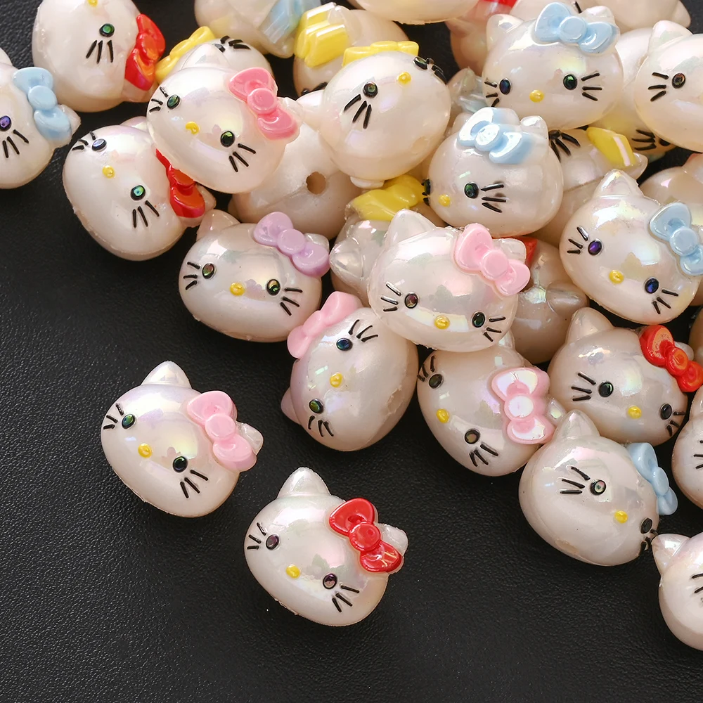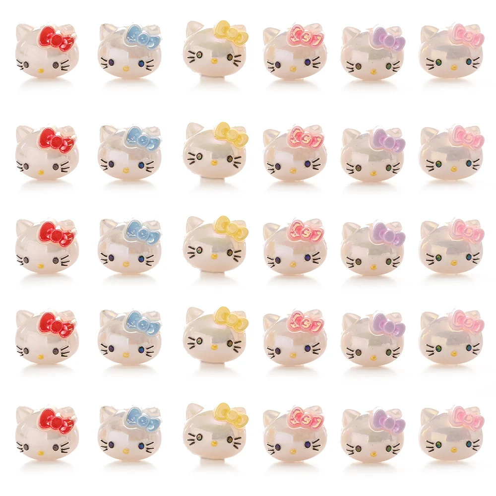 10Pcs Randomly Mix Resin Beads Hello Kitty Head Focus Bead For Baby Teething Pacifier Chain Beads Teething Bracelet Aceessories