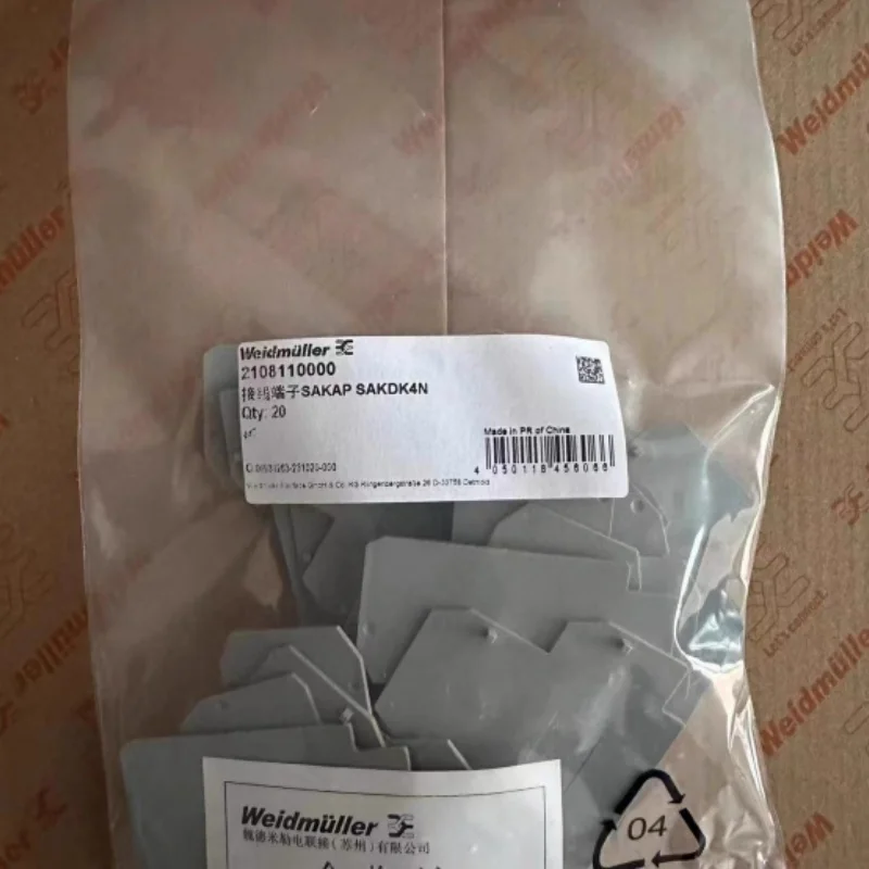 20PCS Weidmüller double-layer terminal cover SAKAP SAKDK4N 2108110000 gray, height: 59.5 mm, width: 1.5 mm, V-0, PA 66/6