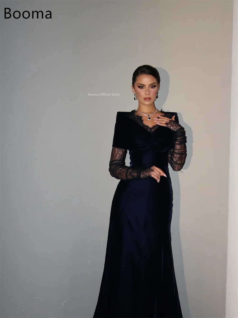 Booma A-Line Lace Velvet Evening Dresses Formal Party Gowns for Women Off The Shoulder Elegant Prom Gown Customize 2025